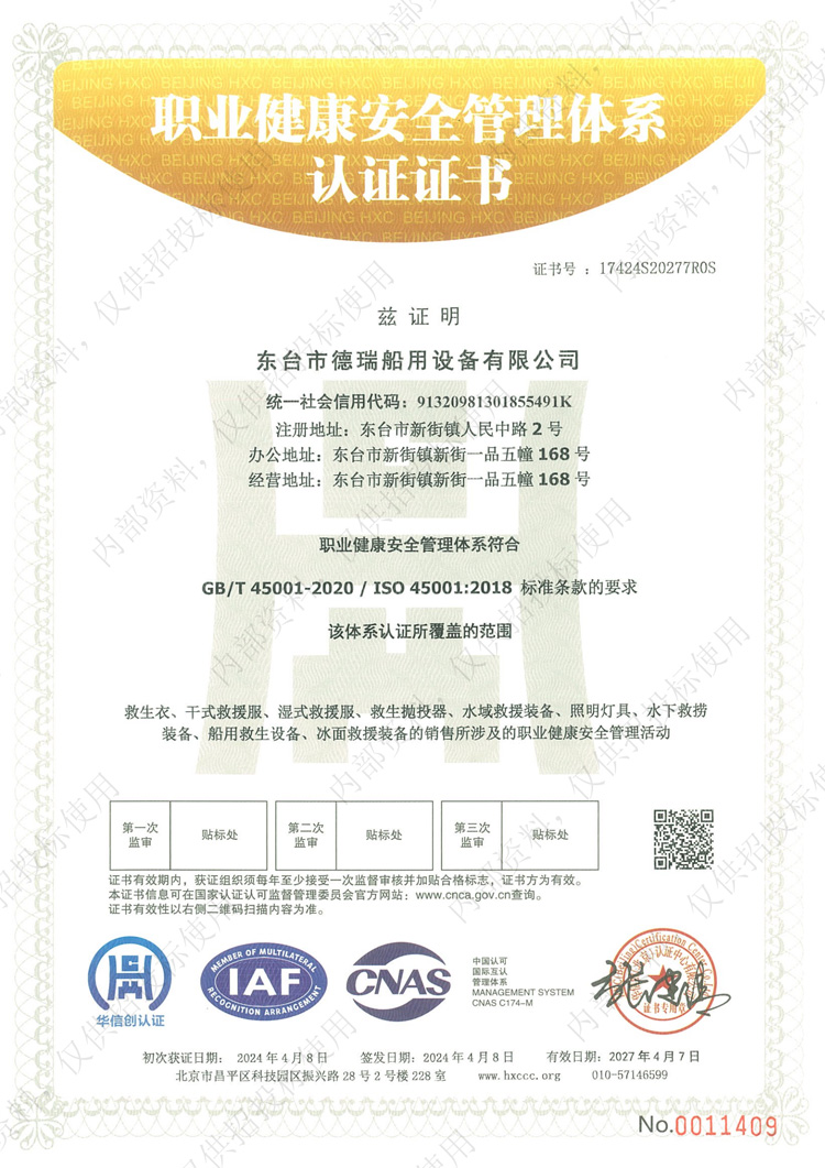 職業(yè)健康安全管理體系認(rèn)證證書