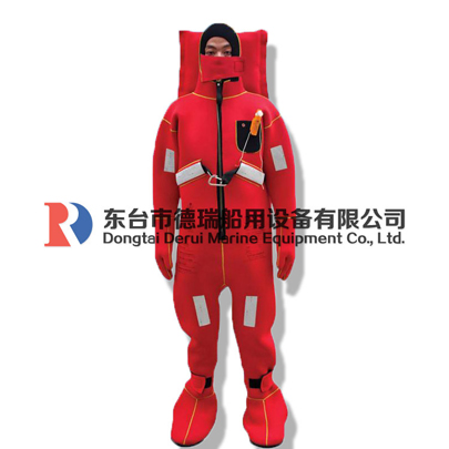 DBF-II 型.具有浮力的、無(wú)須加穿救生衣的絕熱型浸水保溫服。面料采用優(yōu)質(zhì)氯丁橡膠(NEOPRENE),具有防水性、保溫性、耐溫性、阻燃性、耐油性及規(guī)定的強(qiáng)度,為多層復(fù)合型,無(wú)毒、無(wú)刺激性氣味,不會(huì)因海上空氣、海水、淡水、油及真菌而影響使用。該產(chǎn)品經(jīng)中國(guó)船級(jí)社型式認(rèn)可和檢驗(yàn)。
