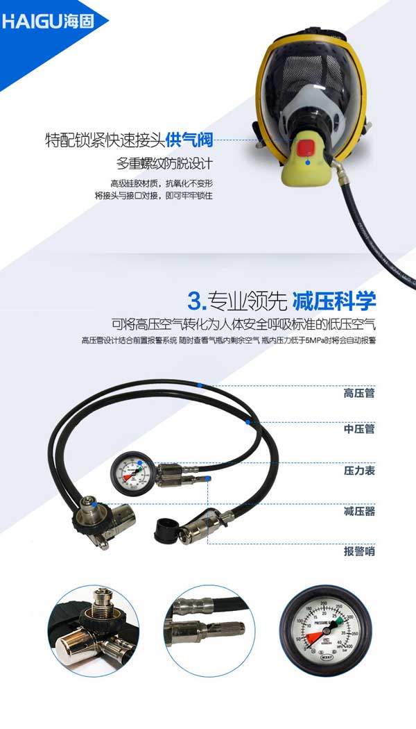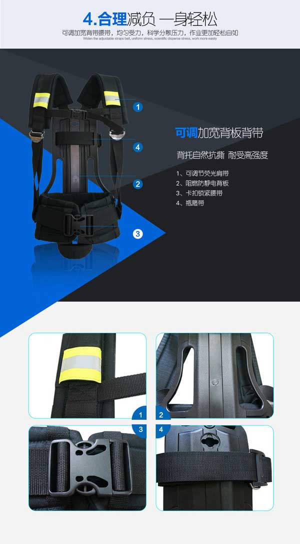 海固RHZKF6.8/30正壓式消防空氣呼吸器為自給開放式空氣呼吸器,可以使消防人員和搶險救護人員在進行滅火戰(zhàn)斗或搶險救援時防止吸入有毒有害氣體、粉塵顆粒物,也可在化學品事故泄漏、化工、石油、冷庫、船舶、冶煉、電力、實驗室、礦山、燃氣開采運輸?shù)热毖醐h(huán)境中使用,從而有效地進行滅火、搶險救災(zāi)救護和特種勞動作業(yè)。
