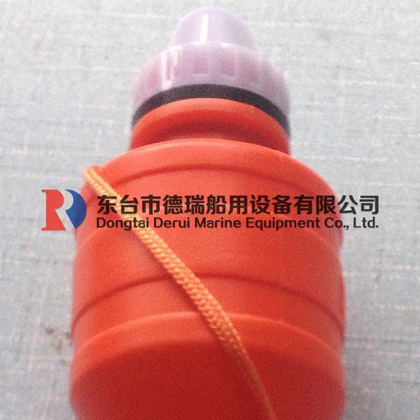 (二)使用:當船舶上的落水人員落水時,船上工作人員應立即將燈從支架中拉出,同時將吊繩從救生圈鉤架上脫出(若海水電池圈燈,還應將燈向下發(fā)力把進水拉塞隨拉繩一同從燈體中拉掉,以便進水),然后將燈隨救生圈投向落水者。此時,該燈便會燈頭朝上漂于水面,干、鋰電池圈燈水銀開關會自動將燈點亮,海水電池圈燈當電池盒進水后,即會自動活化,在2min后將燈點亮。